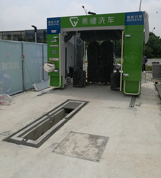 设备端,设备端接收到指令后,通过RS485通讯控制洗车机打开栏杆,车辆即可开到指定位置,自动洗车。